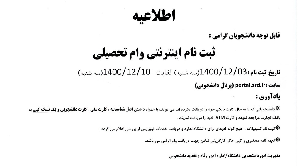 ۳- حضور کلیه دانشجویان در این آزمون الزامی می باشد. بدیهی است غیبت دانشجو به منزله عدم کسب حداقل ۵۰ درصد نمره قبولی محسوب می شود و دانشجوی غایب در این آزمون همانند دانشجویانی که حدتصاب ۵۰ درصد را اخذ نکرده اند ملزم به اخذ درس پیش دانشگاهی می باشند. دانشجویانی که ۵۰ درصد و یا بیشتر را کسب کنند زبان عمومی را کسب خواهند کرد.